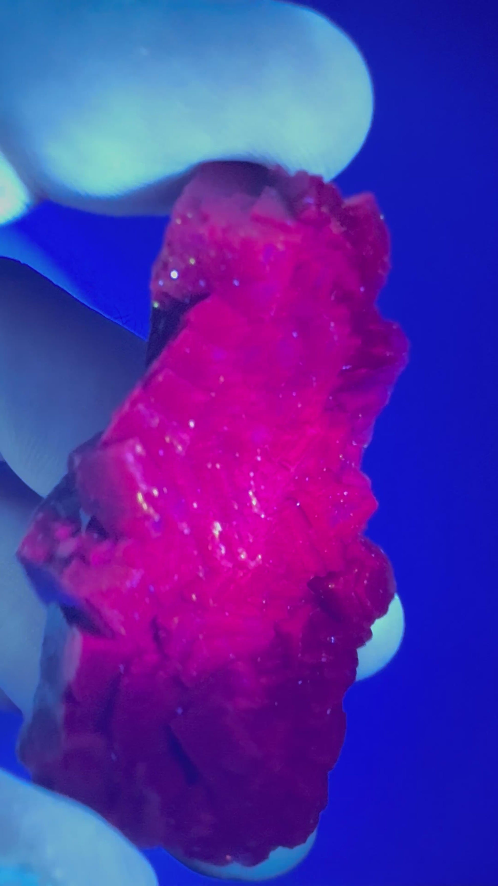 UV Light Reaction: One of the most fascinating aspects of Black Rose Fluorite is its behavior under UV light. When exposed to longwave UV light (365nm), it emits a vibrant red glow, often edged with neon orange and deep pink hues. This fluorescence is attributed to trace elements like manganese and samarium within the crystal structure.